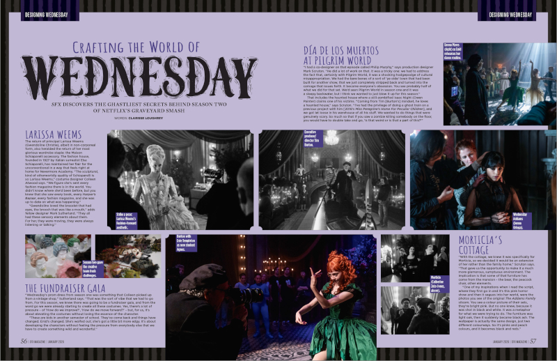 Here at SFX, we love to shine a light on the work of creative people behind the scenes. This time it’s the turn of Netflix’s Addams Family show, as we learn about the work of production designer Mark Scruton, costume designers Colleen Atwood and Mark Sutherland, prosthetics designer Tristan Versluis, and visual effects supervisor Tom Turnbull.