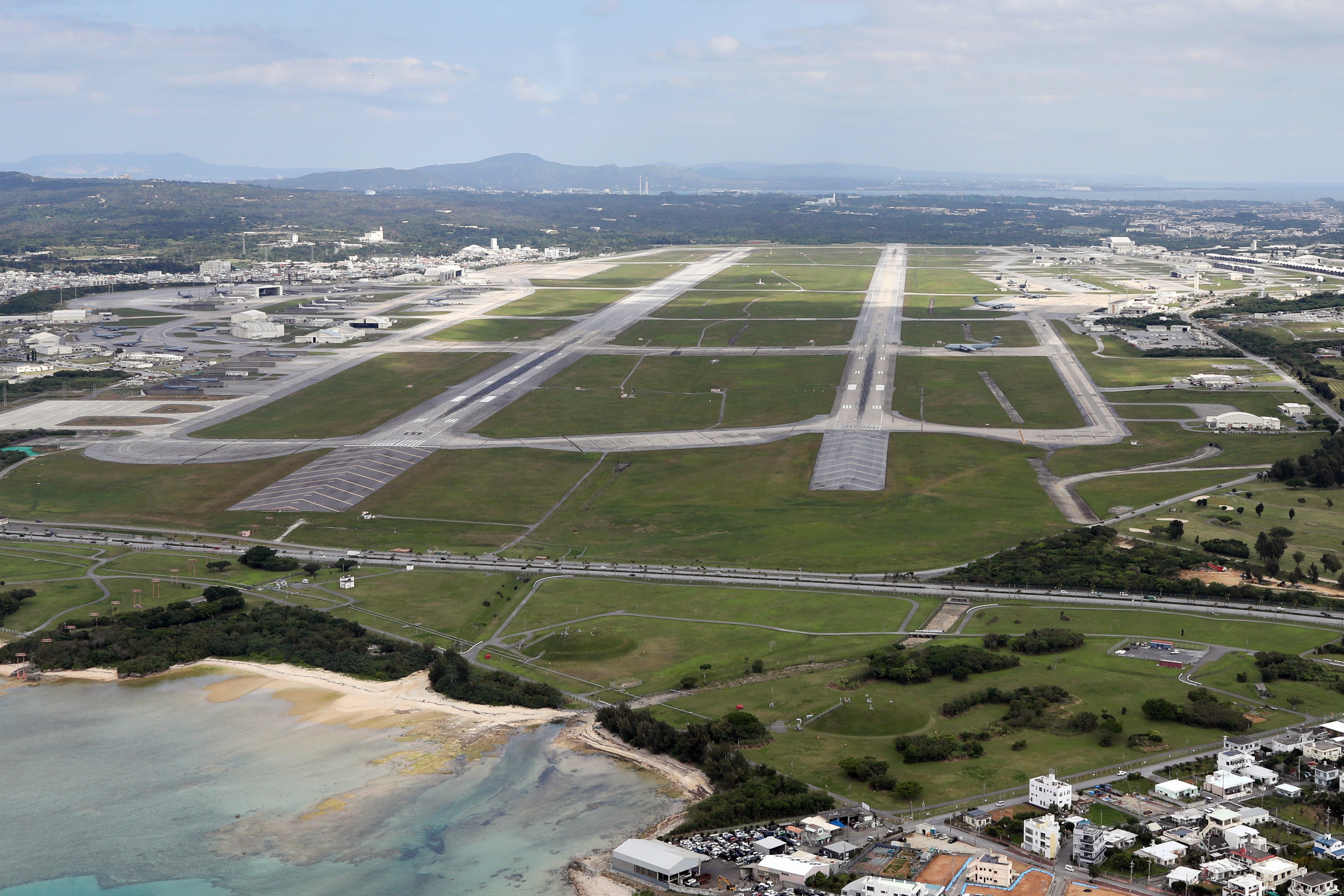 Aerial view of the US Kadena air base in Kadena, Okinawa prefecture, southern Japan, 25 February 2022 (JiJi Press)