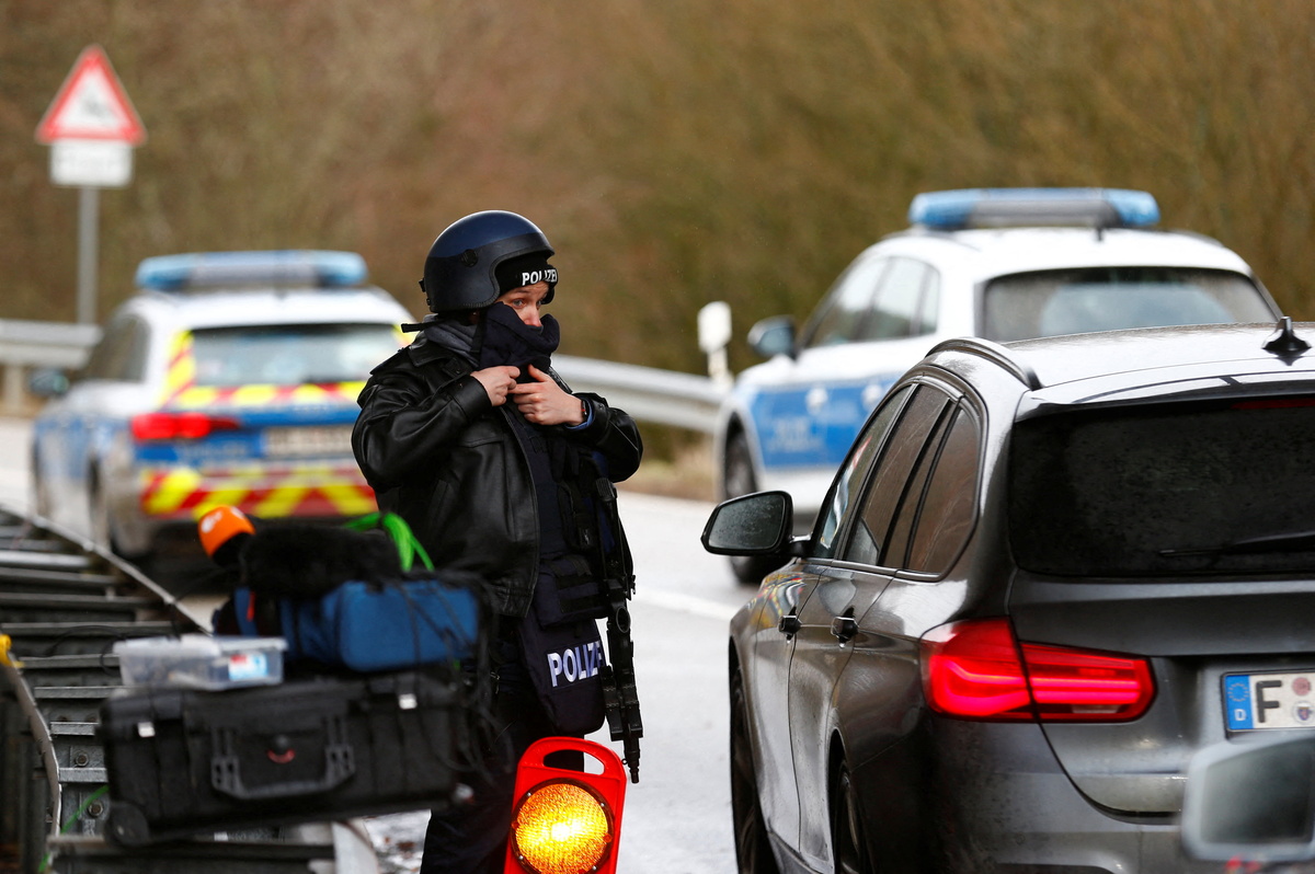 A police officer works on a road near the site where two German police officers were fatally shot early January 31, 2022, during a routine traffic stop near Kusel, southwestern Germany, January 31, 2022. REUTERS/Thilo SchmuelgenA police officer works on a road near the site where two German police officers were fatally shot early January 31, 2022, during a routine traffic stop near Kusel, southwestern Germany, January 31, 2022. REUTERS/Thilo Schmuelgen
