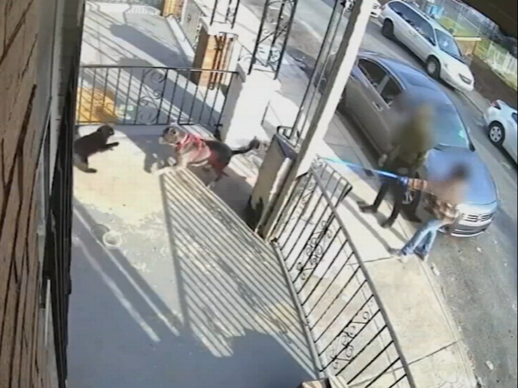 One of the dog handlers could be heard saying “good boy” as the dogs attacked the cat. The altercation came to an end when one of the cat’s owners ran outside.