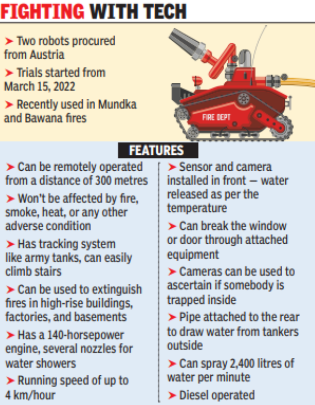 Imported from Austria, the robots arrived in India in January this year while their trial started from March 15. Officials said these advanced machines proved successful in dousing recent fires in Mundka and Bawana.