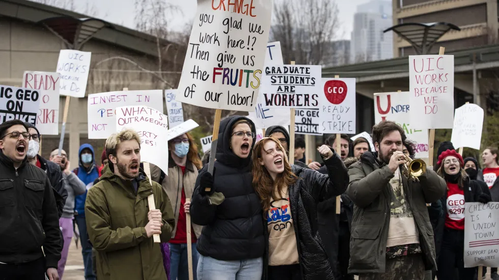The Graduate Employee Organization Local 6297, which represents 1,500 grad students who work mostly as teaching and research assistants, said the union and UIC administration reached a tentative agreement just before midnight that includes a 16% pay increase over the life of the three-year contract. The raise will boost minimum pay to around $24,000 per year from $20,000.
