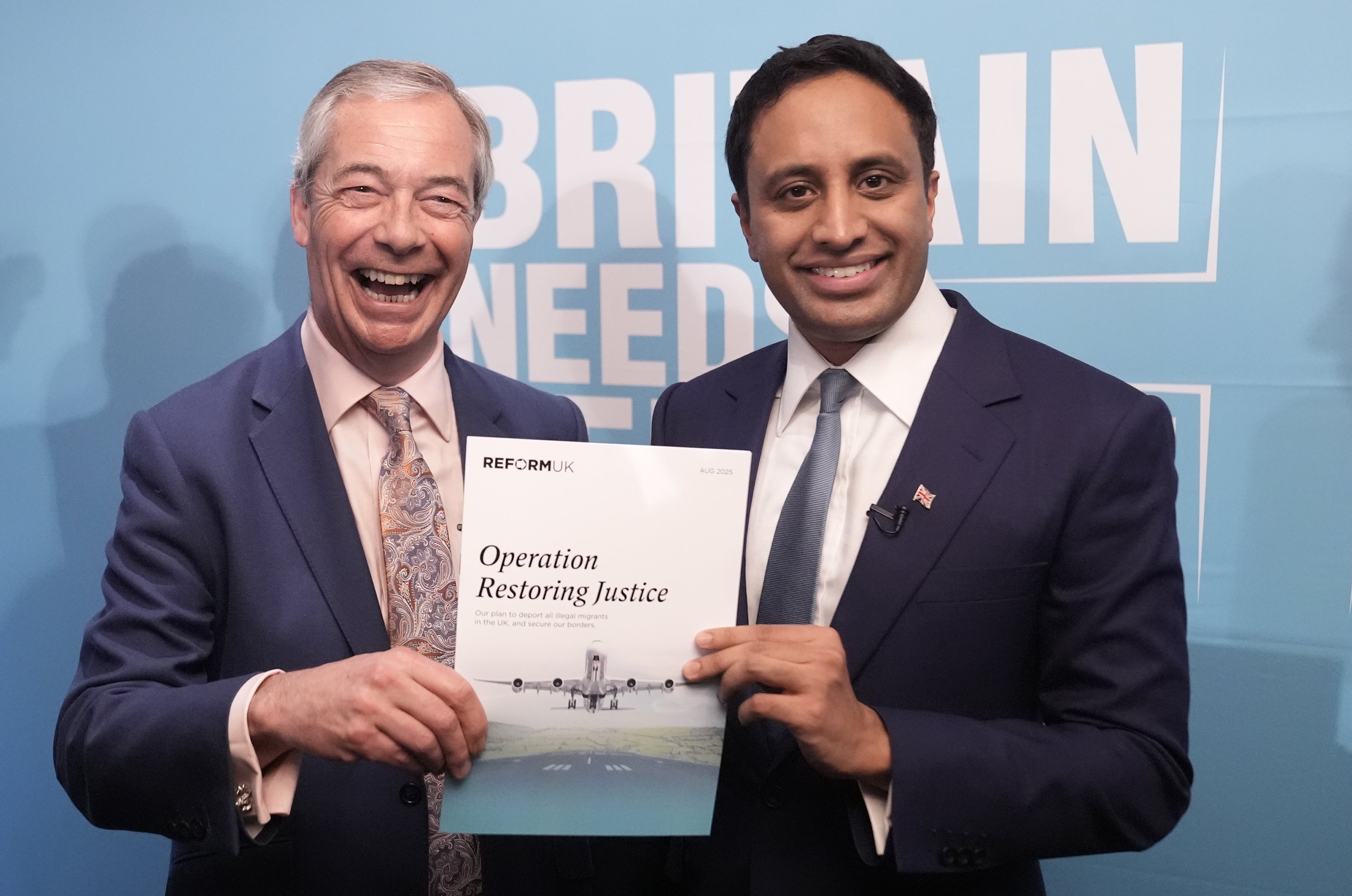 Monday 23 February 2026 12:43 , Dan HaygarthParty leader Nigel Farage with Reform UK's home affairs spokesman Zia Yusuf holding their party's plan, Operation Restoring Justice, to deport all illegal migrants in the UK.