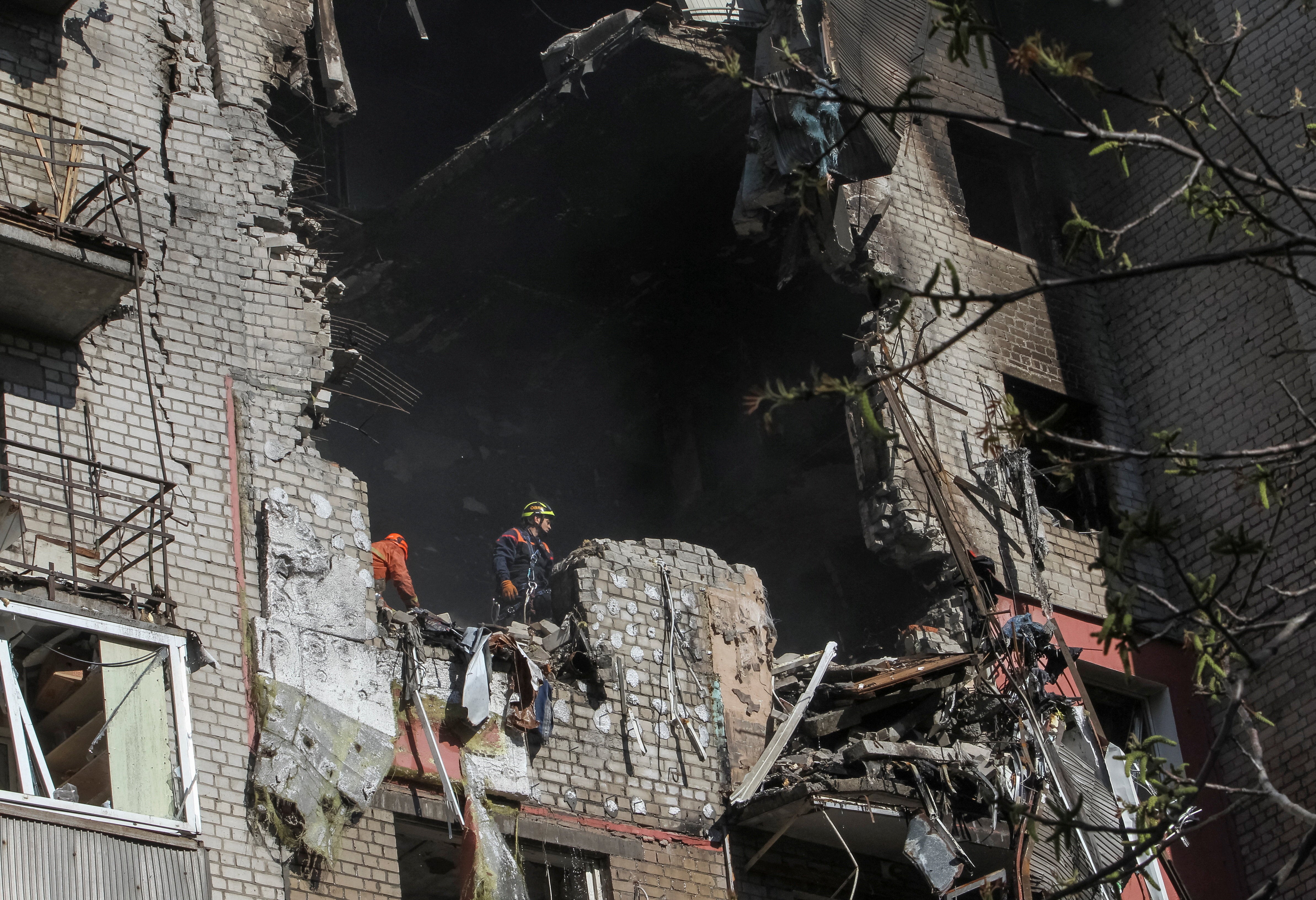 In pictures: Russian attack on Dnipro blowing huge hole in apartment building