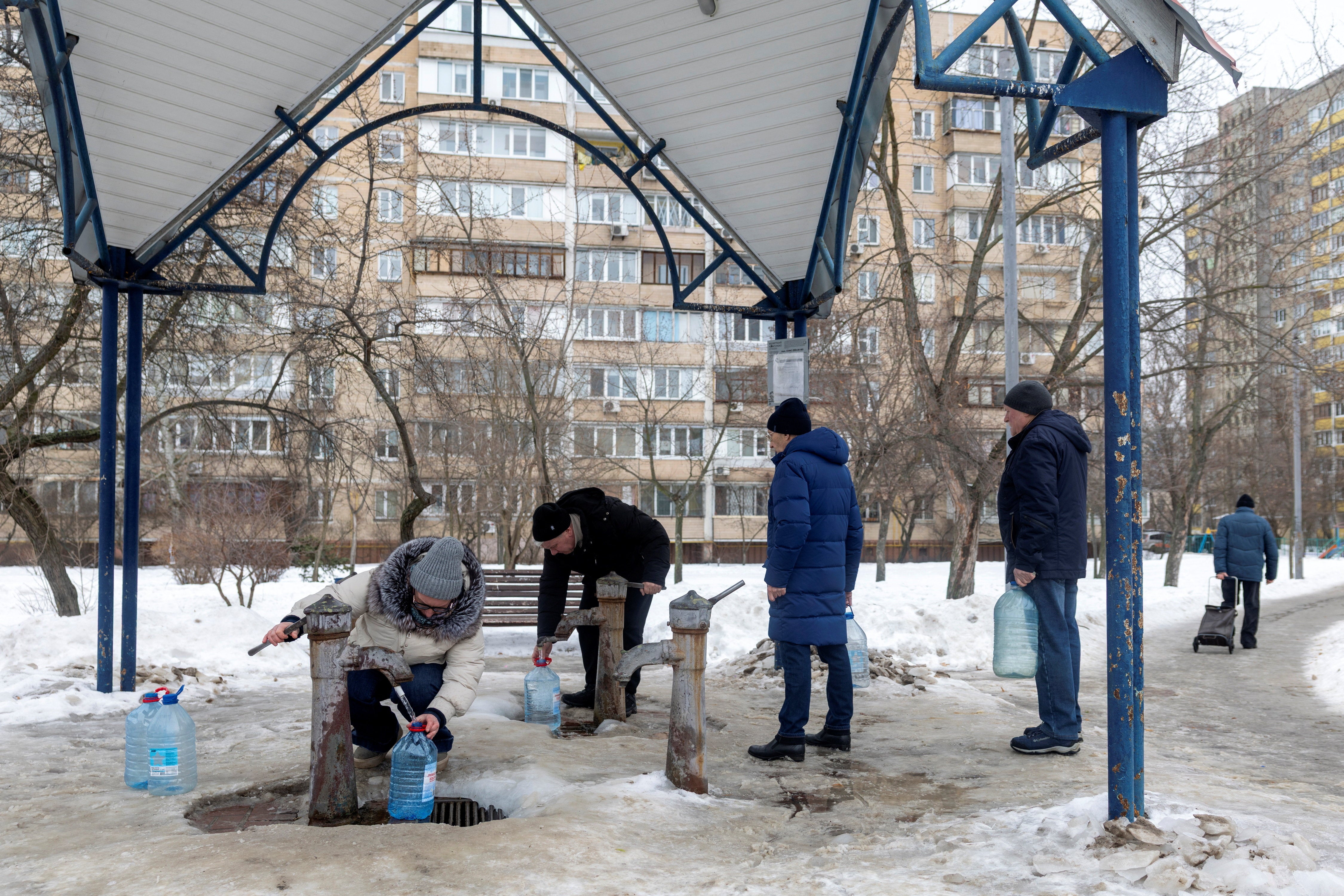 Pictures show Ukrainians struggle without electricity and water