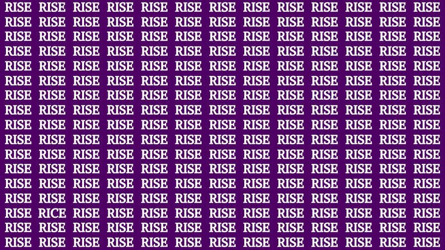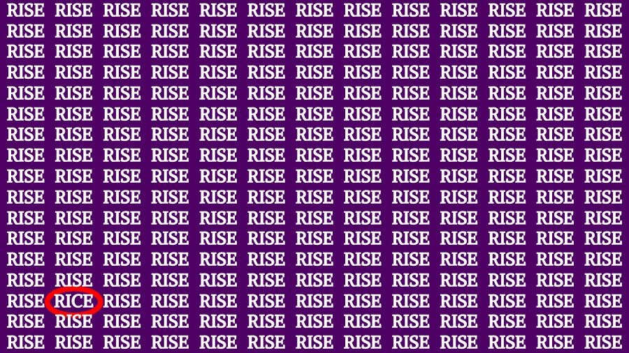 Within this mental maze lies an expansive ocean of words. Predominantly, the word "RISE" graces its surface. Yet, hidden amidst this linguistic sea is the elusive term "RICE." Commence the chronometer: 20... 15... 10... 9, 8, 7, 6, 5, 4, 3, 2, 1—halt! Did you succeed in unearthing the concealed "RICE"?