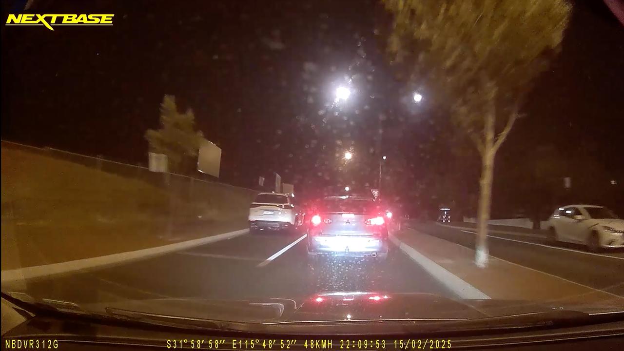 The footage shows Bellinge's car speeding down dark suburban streets and tailgating vehicles as he continues to shout vile statements at other drivers and his wife, reaching speeds in excess of 130km/h.