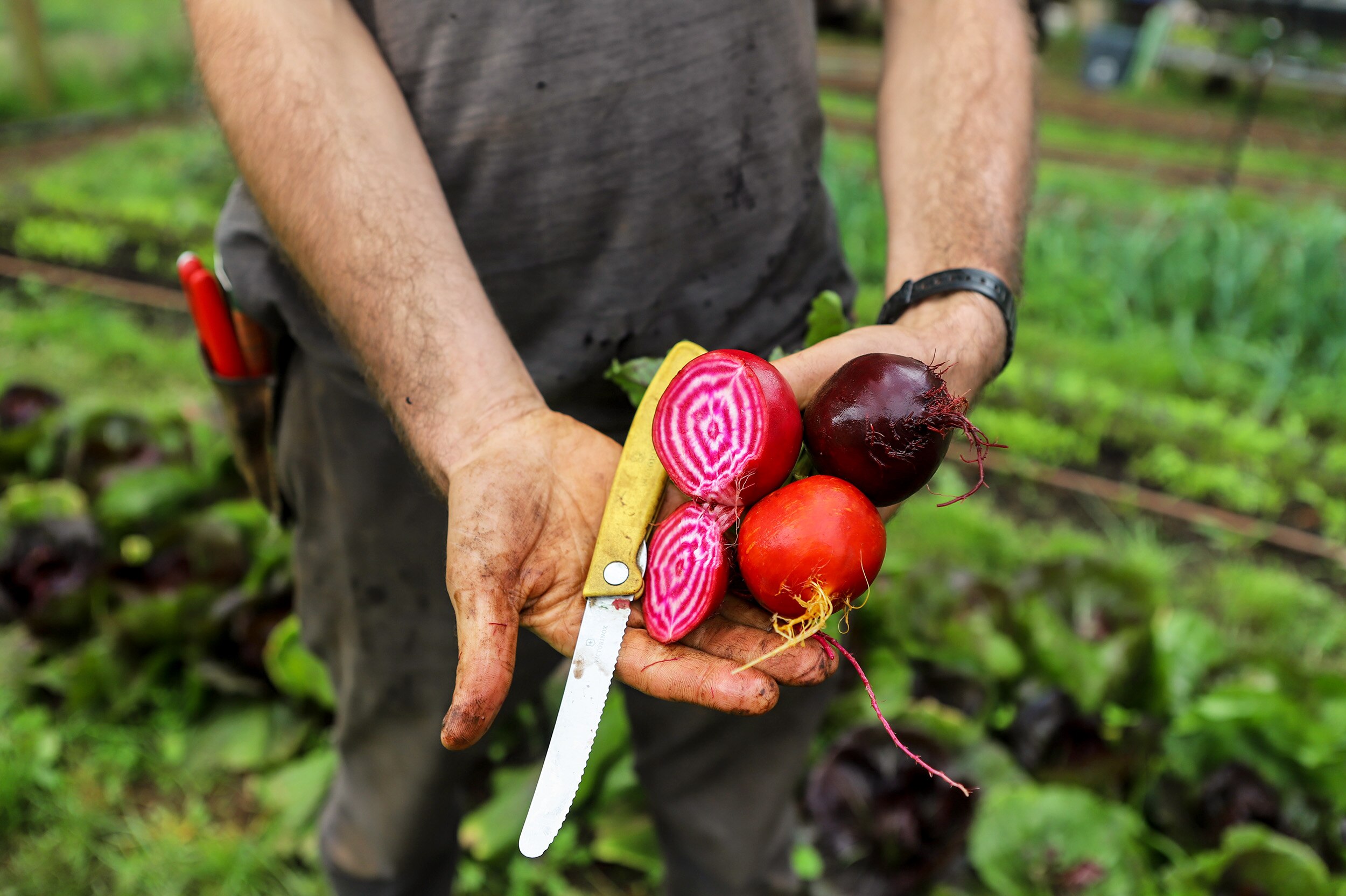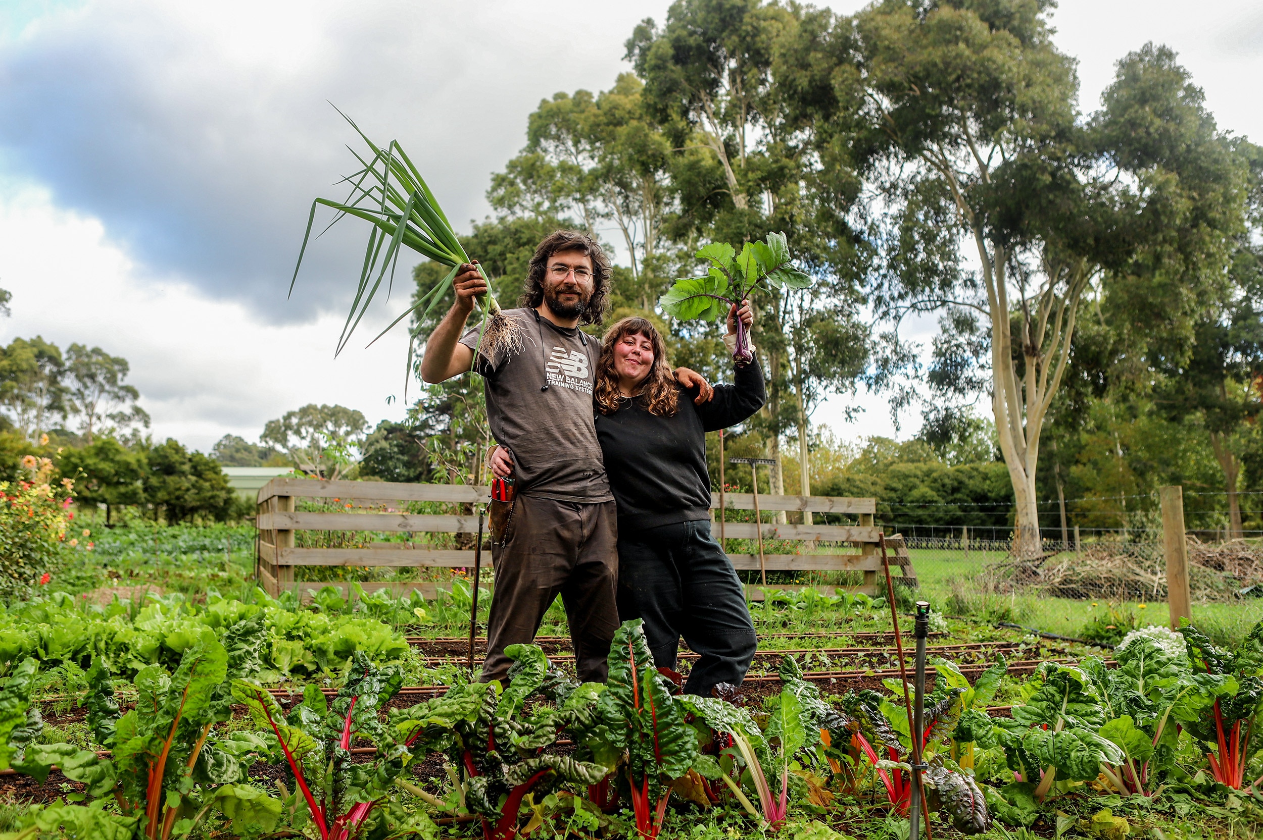 On a small patch of land to the east of Melbourne, where the city's fringe gives way to something more pastoral, you can find rows of vibrant rainbow chard, pink-hued beetroot and one bright-faced, dirt-covered young couple.