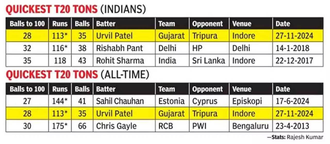 At the ongoing Syed Mushtaq Ali T20 tournament - India's premier domestic T20 meet - Patel smashed the fastest-ever T20 century by an Indian batter.