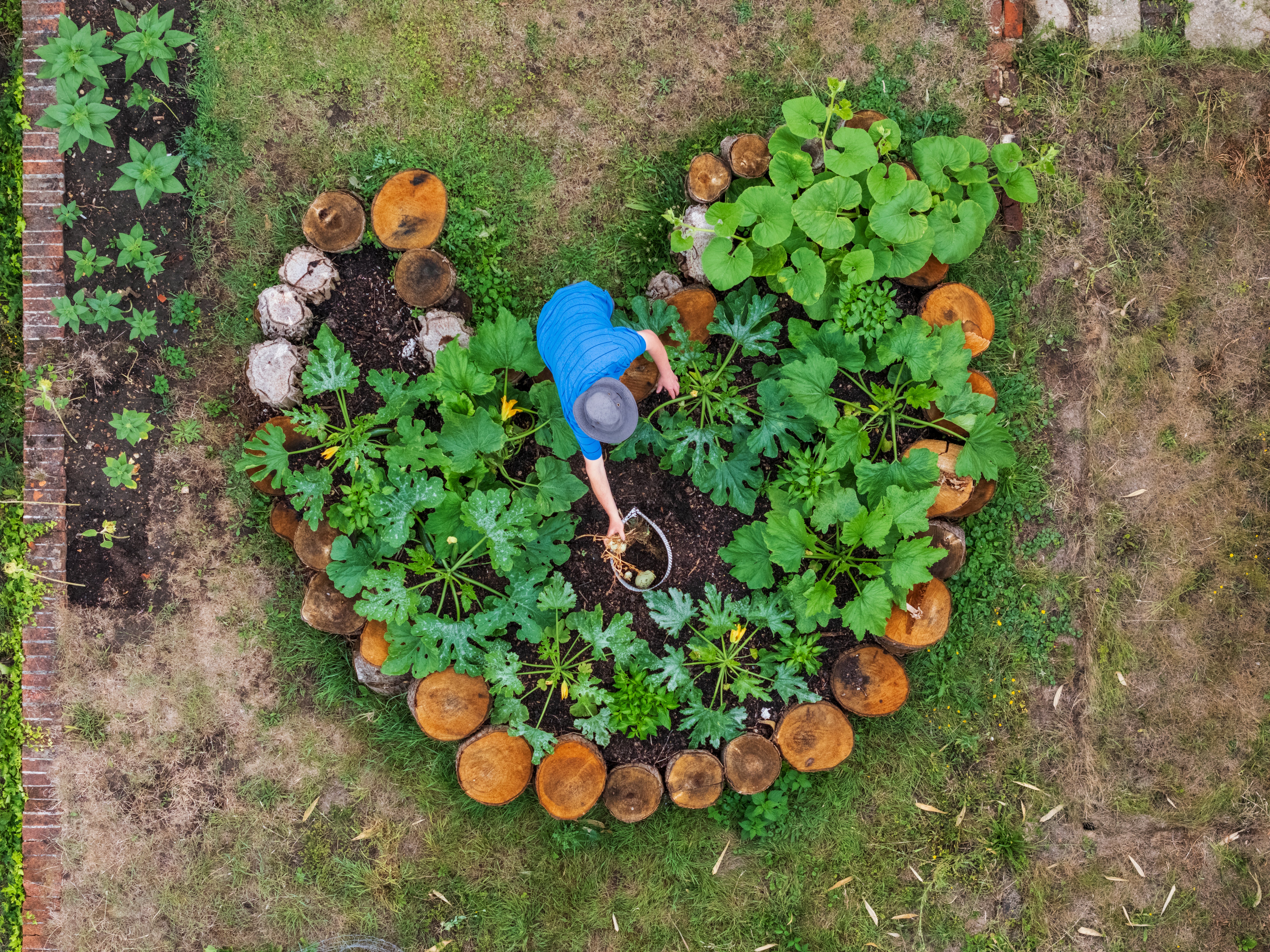 “The crops that you then plant in the raised bed around the central compost will be fed and it also reduces the amount of watering for your crop. Almost any vegetable would benefit, from lettuces and cabbages to courgettes and pumpkin.”