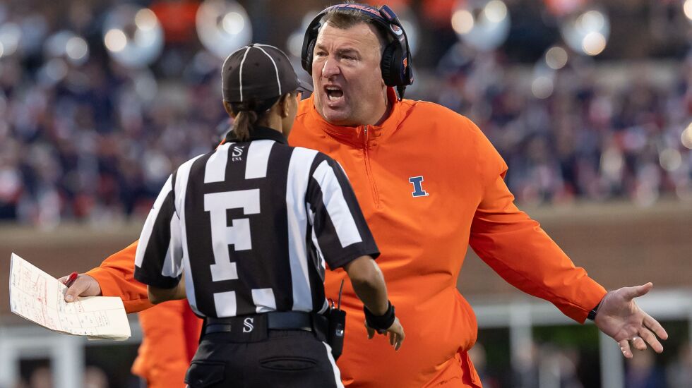 The Illini have lost the physical edge they seemed to have in 2022, when they were 8-5. The offense is incapable of converting in short-yardage situations or draining the clock with a late lead. The defense got steamrolled by the Badgers after defensive star Johnny Newton was ejected for targeting early in the fourth quarter.