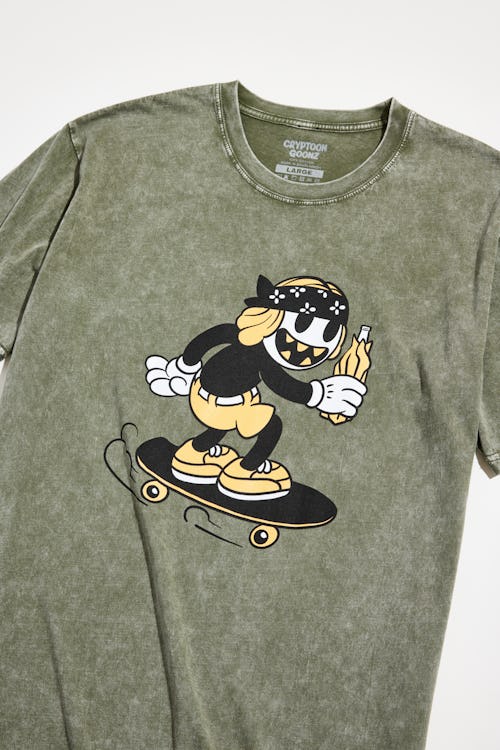 NFTs have officially made it to Urban Outfitters. The lifestyle retail store is partnering with NFT community Cryptoon Goonz to present an exclusive five-piece T-shirt collection. A couple of Cryptoon Goonz’s signature characters make appearances throughout the capsule, and 500 NFTs will also release to accompany the apparel.