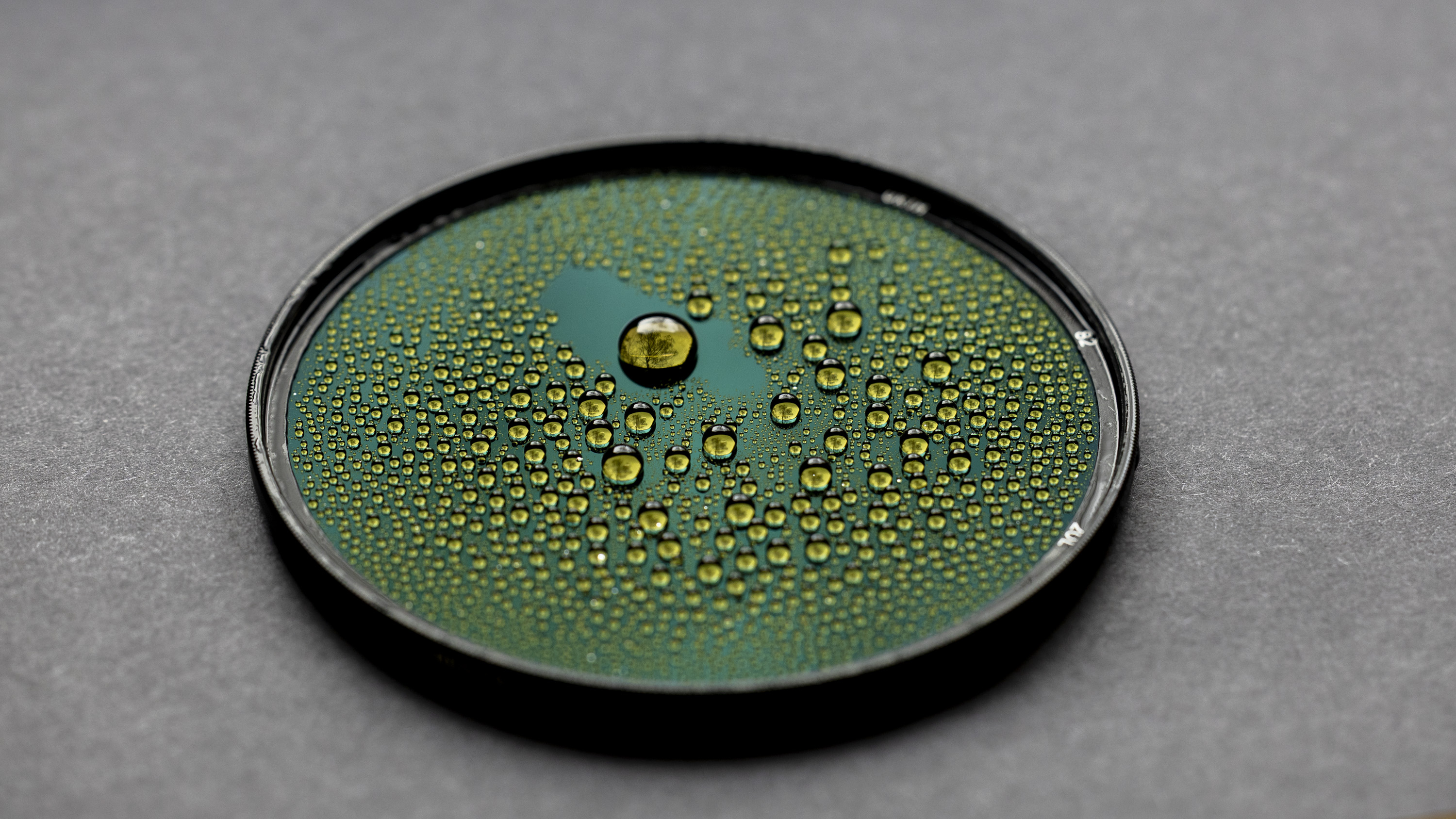 The coatings on the Urth IR Filter Plus+ were some of the best I've tested, and here you can see just how hydrophobic they are. Water and oil really don't want to 'stick' to the filter surface, so it's easily shaken off and easy to clean and maintain, too. In addition, it also boasts coatings for anti-reflectance, dust, and scratch resistance.