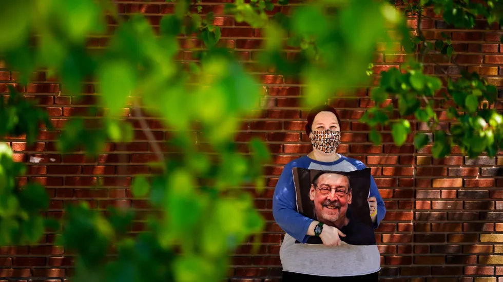 Sara Atkins, 42, of Wynnewood, Pennsylvania, channels her grief into fighting for global vaccination and better access to health care to honor her father, Andy Rotman-Zaid, who died of COVID-19 in December 2020.