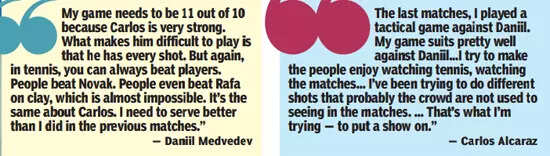 “But again, tennis, you can always beat players,” Medvedev reminded. “People beat Novak. People even beat Rafa on clay, which is almost impossible. It’s the same about Carlos. I need to serve better than I did the previous matches,” he said. “I need to serve on the line. I need to put my shots on the line. I need to be there 100 per cent of the time and be better.”