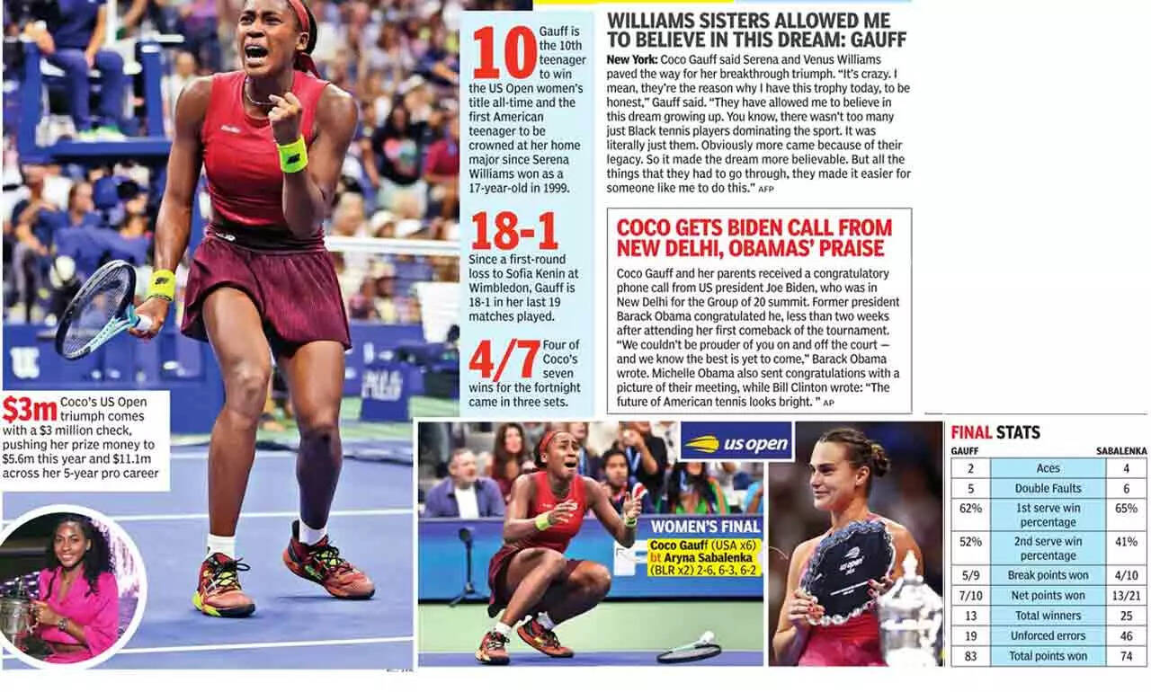 NEW YORK: There's a video of Coco Gauff singing Carly Rae Jepsen's 'call me maybe' doing the rounds on social media. She's eight and bouncing about the stands on Arthur Ashe Stadium.