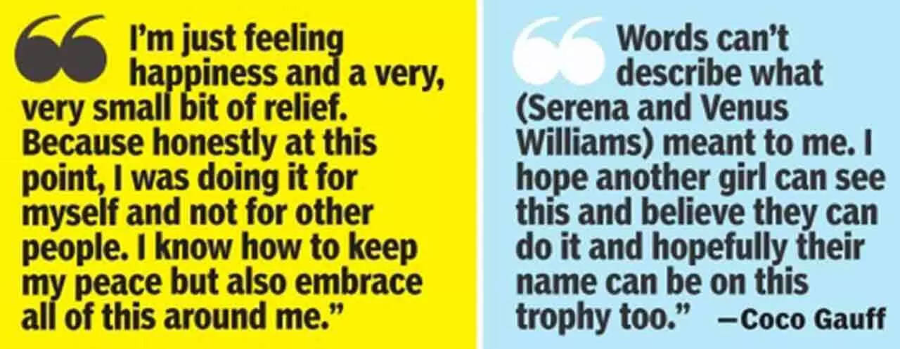 Not a care in the world. On a sunless Saturday in New York, when the 19-year-old, the weight of expectations on her shoulder, fell on her back sobbing after clinching the US Open title, the first American teenager since Serena Williams in 1999, life had come full circle. Only so much as those intervening years, dark days of doubts, was the making of Gauff.