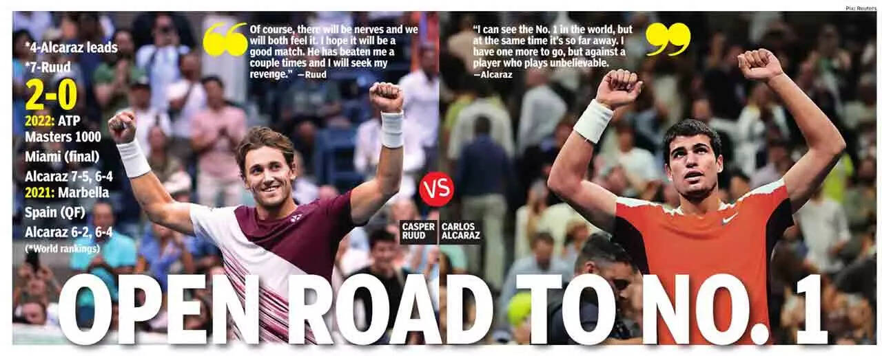 Carlos Alcaraz, explosive and electric, and all of 19, will go up against the solidity of the second-generation tennis pro - Casper Ruud in a winner-takes-all US Open final.