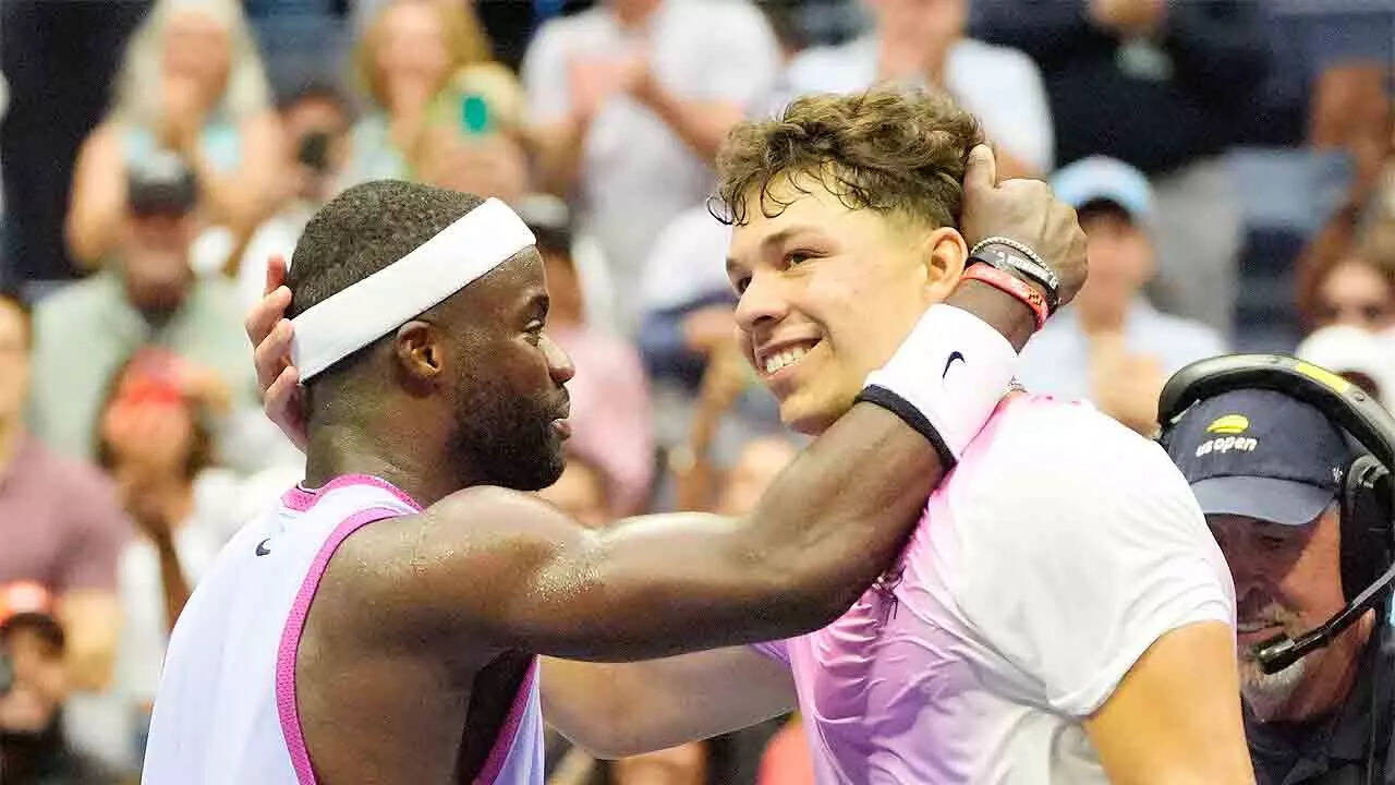 Without turning around, Tiafoe scored his second match point by slyly approaching the net and executing a deft volley into the open court. He then celebrated his first victory against his countryman by giving him a quick hug at the net.