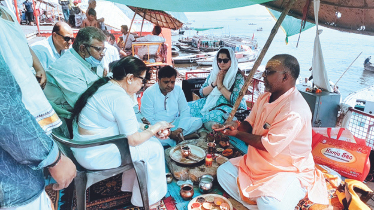 Lata Mangeshkar’s sister Usha Mangeshkar along with other family members reached Varanasi with the urn containing the ashes. They took a boat at Khidkiya Ghat from where they went to Ahilyabai Ghat.
