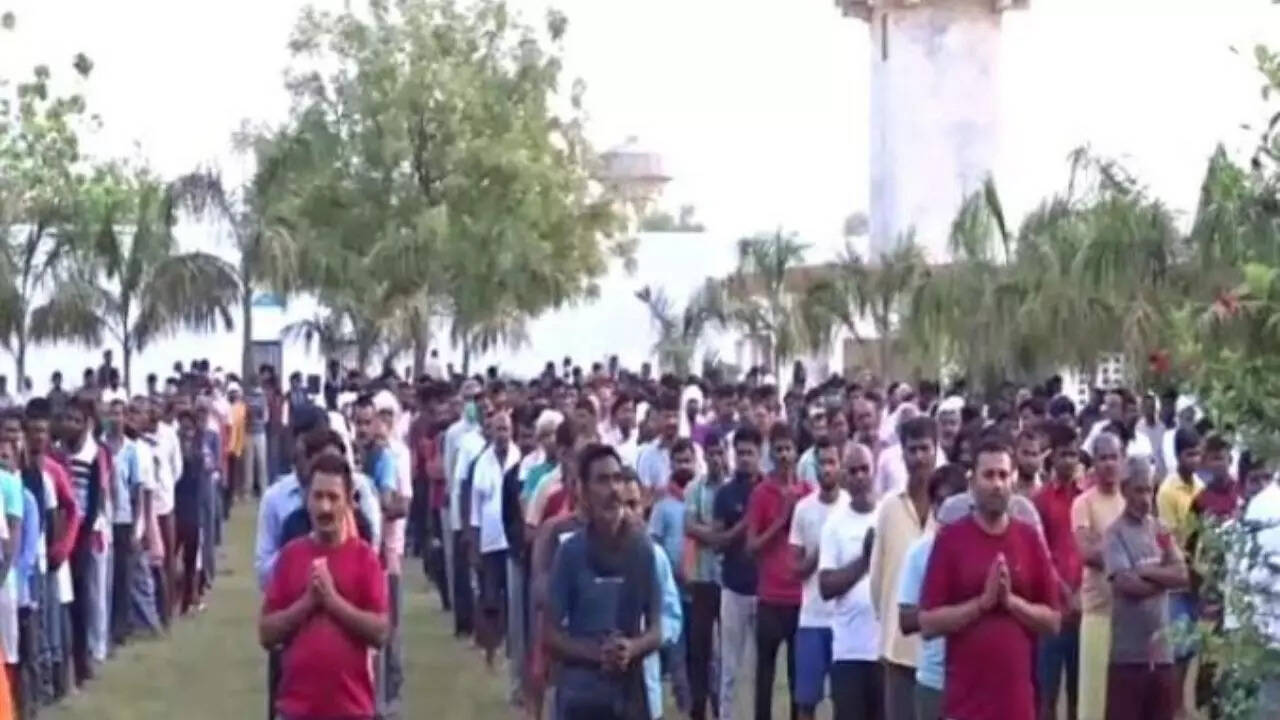 The superintendent of Kaushambi district jail Rakesh Singh told TOI, “After the counting early morning, as many as 650 out of the 850 inmates assemble on the ground inside the jail and participate in the chanting of Gayatri mantra and Mahamrityunjay mantra for five to 10 minutes each.”