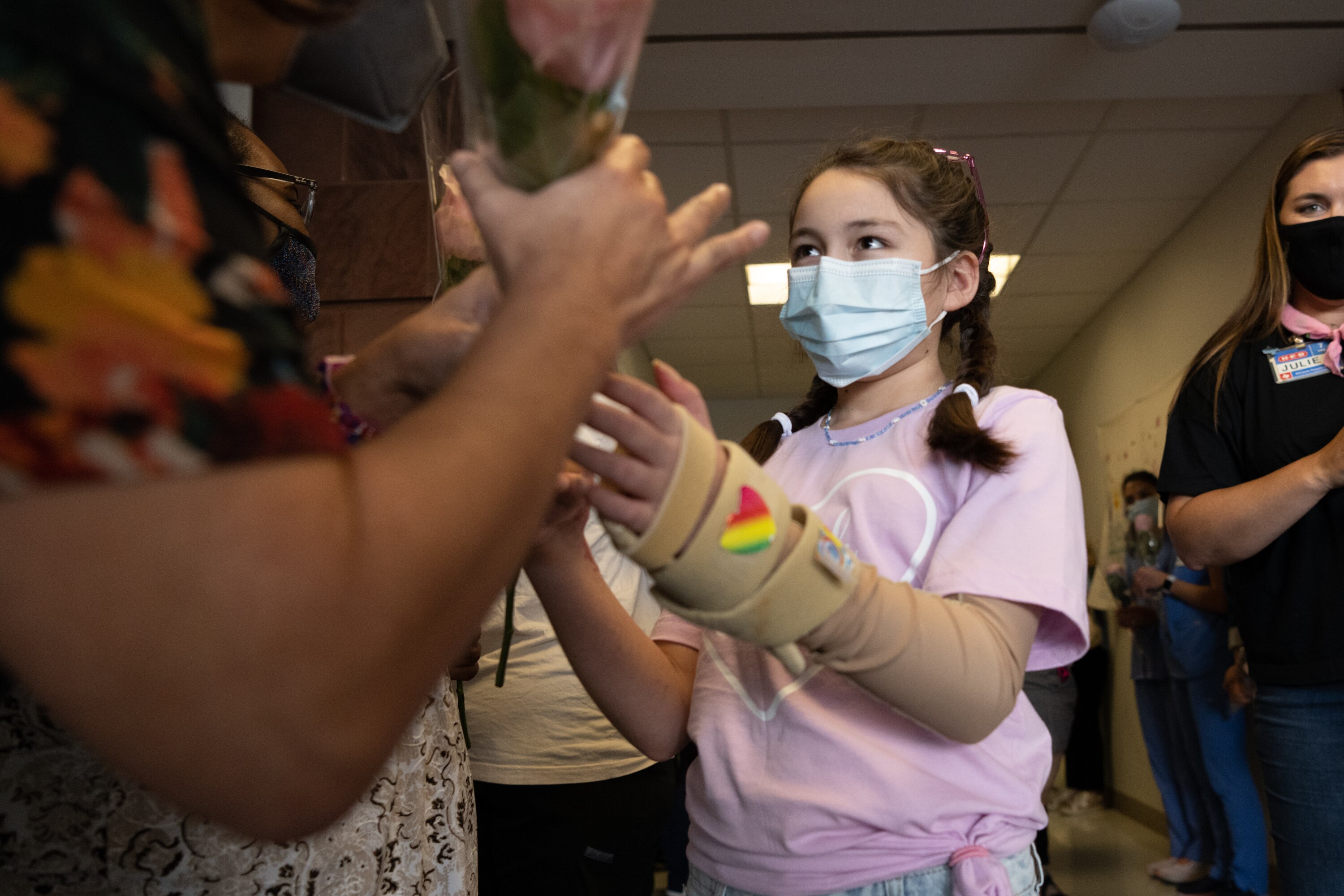 "Today was a happy day at University Hospital! Our final patient from the Uvalde shooting, 10-year-old Mayah Zamora, was discharged! She passed out roses and left in style," the hospital wrote on Twitter.
