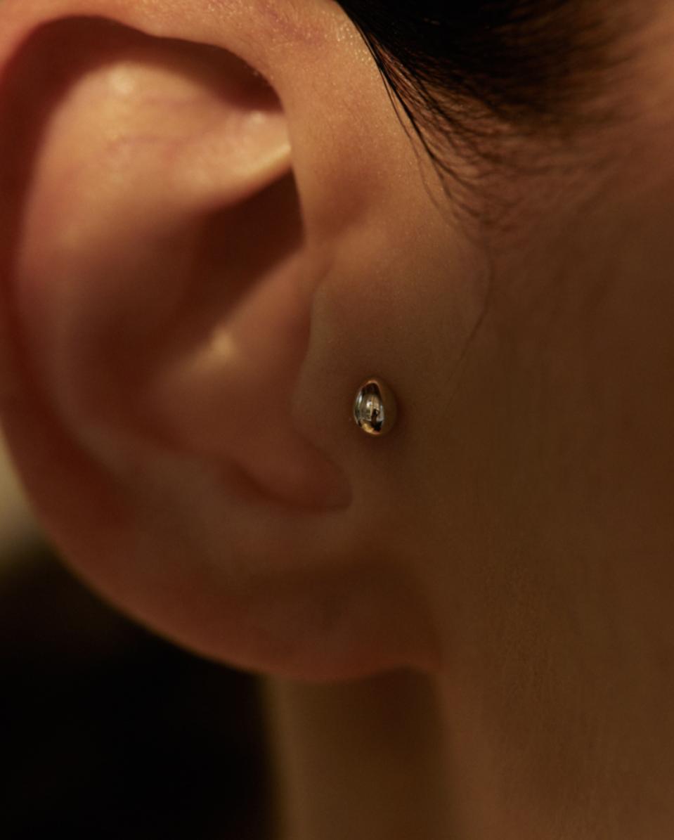 The egg piercing is incredibly cute and versatile. Thanks to the simplicity in design, it can be worn solo or easily paired with any jewelry.