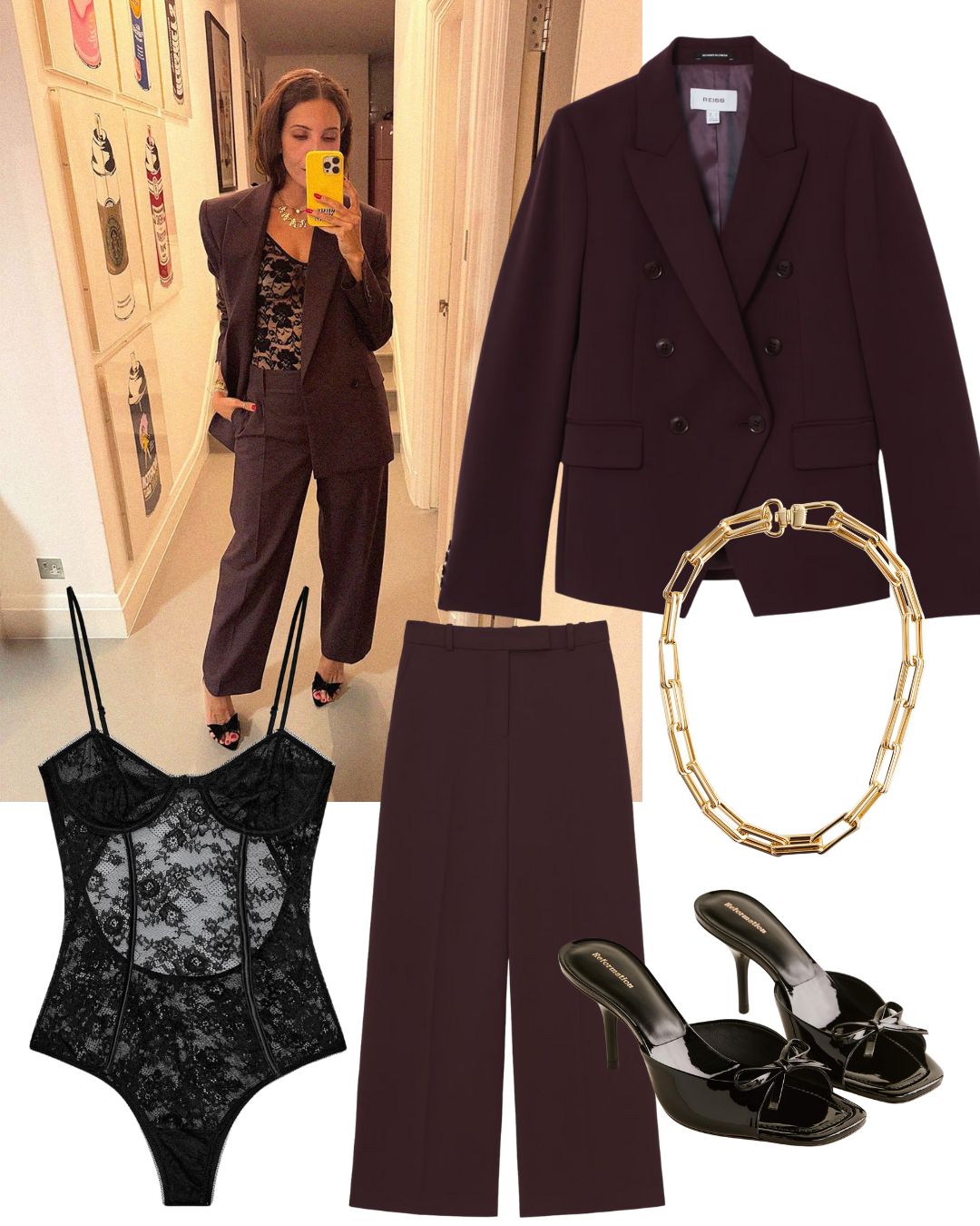 Over time, I’ve learned that having a few simple yet reliable outfit formulas on standby makes all the difference. For me, it's usually the classic "jeans and a nice top" combination for that perfect high-low look that's rarely out of place, with different accessories depending on the occasion and setting. And for when the vibe calls for something more elevated? I love the sultry after-dark vibes of a tailored suit worn with heels and a sheer lace bodysuit beneath.
