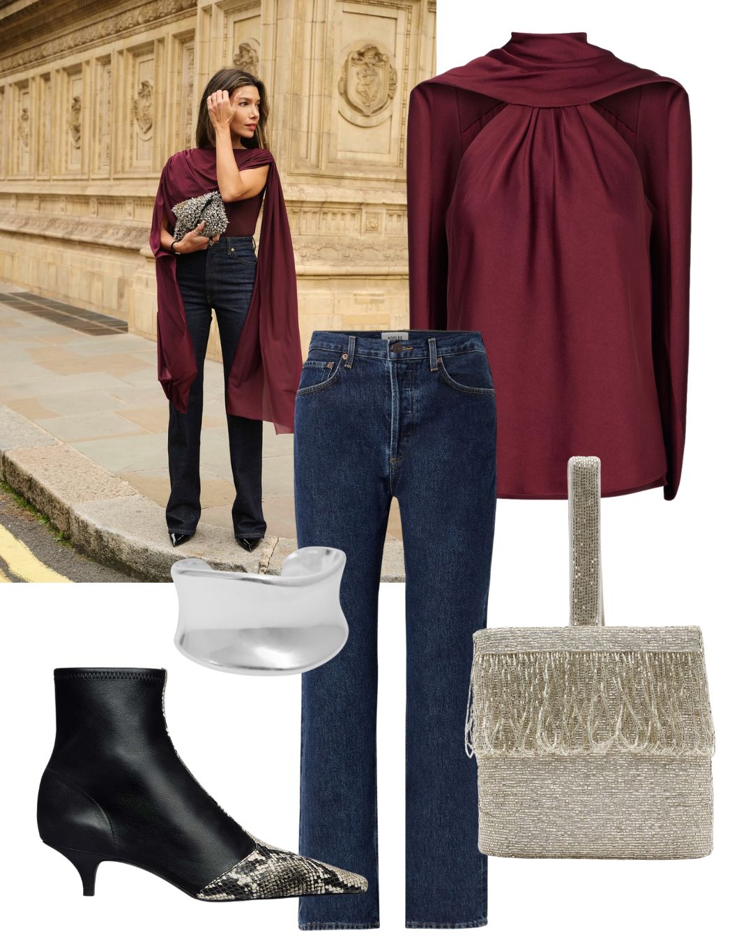 A classic outfit formula for a reason, and still one of the best in my experience. Why? Because it nails that high-low look perfectly, offering polish and effortlessness all at once, while being appropriate in most date-night contexts without looking like you've tried too hard. My hot tip? Balance out a more elegant top with dark straight-leg denim and kitten-heel boots.