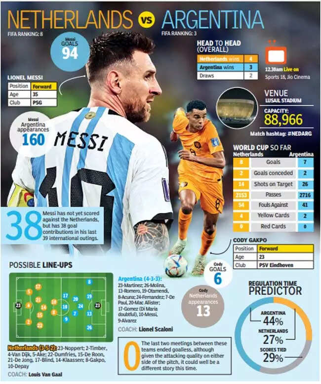 There have been differing journeys for both teams here at Qatar. While the Dutch have somewhat slipped under the radar, the South Americans have captured all attention, cornered all discussion as they have been literally carried by Lionel Messi, almost as if on a mission to deliver the trophy to Argentina. The idea is of eternity - the first World Cup since Maradona’s death two years ago, all pre-match talk happening incidentally on the second death anniversary of their former manager Alejandro Sabella, who was able to defeat the Dutch to the way to the final in Brazil eight years ago.