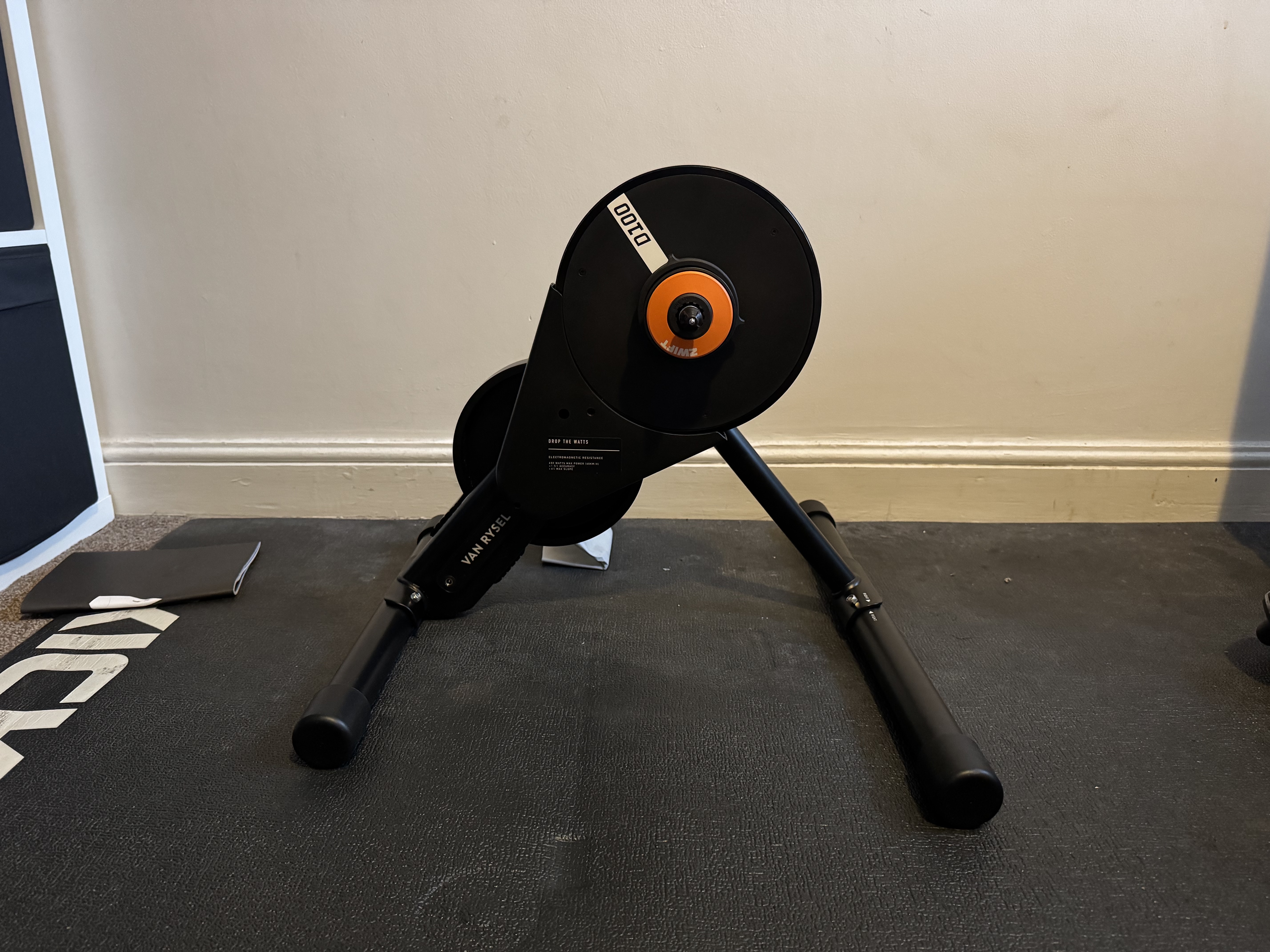 Or it would be that easy had my floor not been so uneven. Given the lack of adjustable feet, this required a careful folding of some errant cardboard in my office to try and get the D100 levelled perfectly. There is also some adjustment of the Zwift Cog to get the correct chainline, but again, this is incredibly easy.