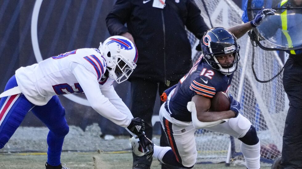 Justin Fields’ best pass of the 35-13 loss to the Bills on Saturday landed in the arms of the most unlikely receiver: rookie Velus Jones.