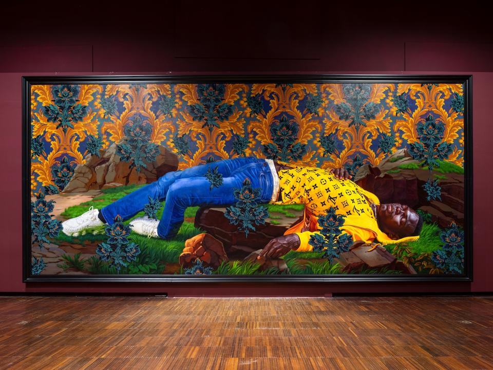 Inspired by Holbein's The Dead Christ in the Tomb, as well as historical paintings and sculptures of fallen warriors and figures in the resting state, the American artist has created a haunting series of prone black bodies, reconceptualizing classical pictorial forms to create a contemporary take on portraiture. For this new body of work, Wiley sheds light on the brutalities of American and global colonial pasts using the language of the fallen hero.
