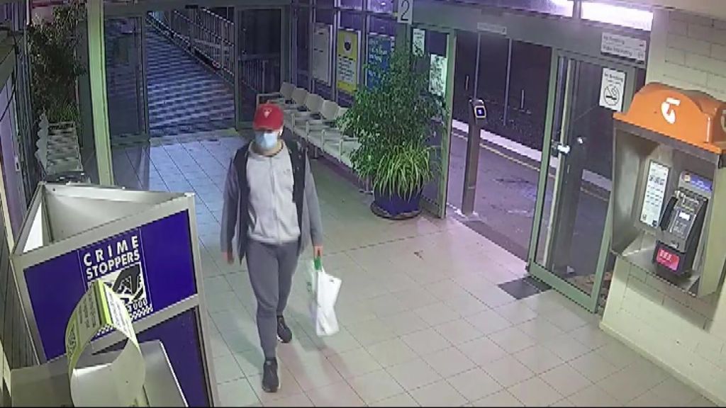 The man was wearing a red Sydney Swans cap and a grey zip-up jumper on both occasions.