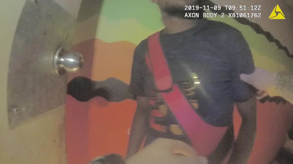The footage shows Constable Rolfe and his partner Constable Adam Eberl entering a home in the community where they were seeking to arrest Mr Walker for breaching a court order.