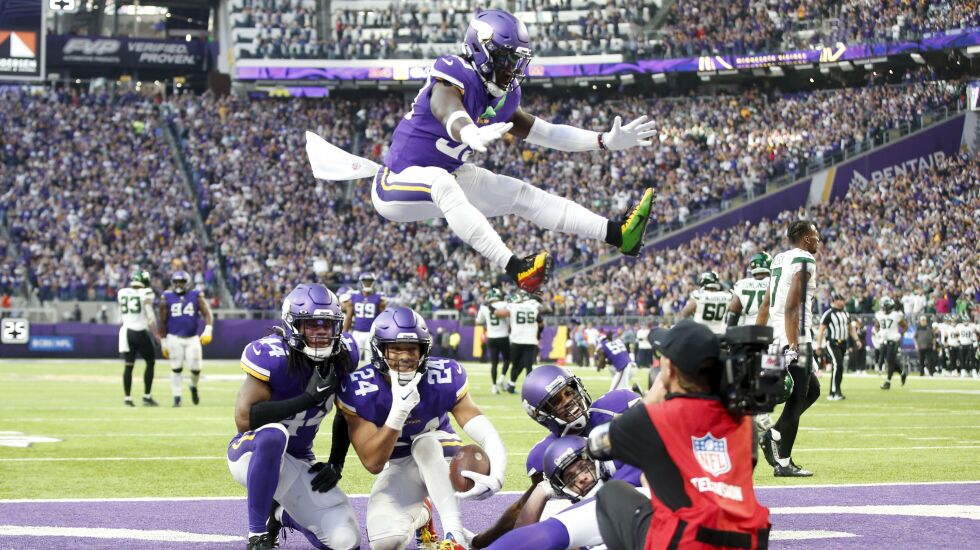 Seven of his first eight passes were incomplete, but he found his rhythm on one of Minnesota’s hardest-earned touchdown drives of the season. Gardner and fellow cornerback D.J. Reed were all over Jefferson, but he drew a holding penalty on each of them during the 14-play march when he ran the ball twice. Most important was his over-the-middle catch before safety Jordan Whitehead leveled him with a hit flagged for unnecessary roughness. Cook scored on the next play from the 4.