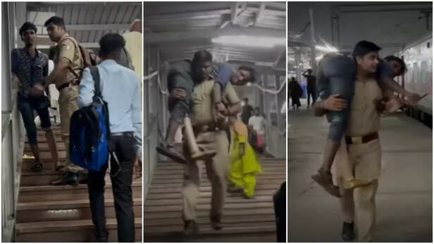 That’s when a railway police officer notices him. Instead of just walking past, the officer walks up, speaks to him, and then does something that has melted hearts online. He gently lifts the young man onto his shoulders and carries him down the stairs. He doesn’t stop there. The officer helps him get into the general compartment, finds him a spot, and even checks his ticket - doing his duty while showing real compassion.