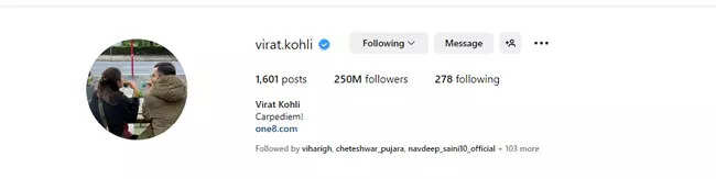 NEW DELHI: IIndian cricketer Virat Kohli has achieved yet another remarkable milestone by becoming the first and only Indian personality to amass a staggering 250 million followers on Instagram.