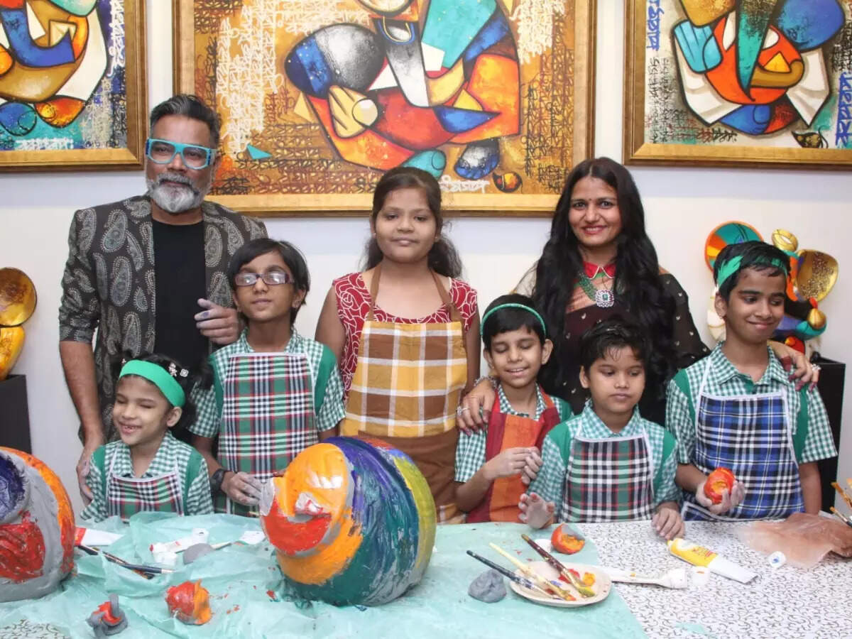 What's interesting is that Om Swami, as part of this art show, undertook the initiative of teaching visually-challenged girl children the art of sculpting Ganesha idols for their future employment prospects. The girls, ranging from ages 8 to 12, were extremely excited and participated in the sculpting process with full enthusiasm. This heartwarming aspect of the evening added an extra layer of meaning to the event that showcased the transformative power of creativity and inclusivity, leaving a lasting impression on the attendees.