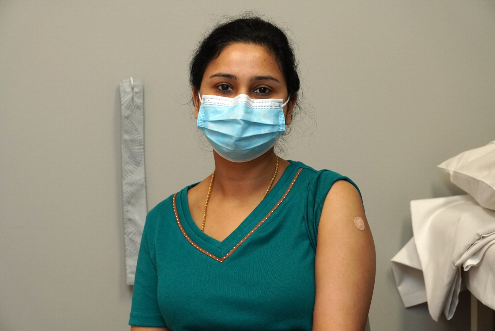Dr Stevens gave 35-year-old dentist Chetana Parthasarathy her second dose of AstraZeneca on Wednesday.