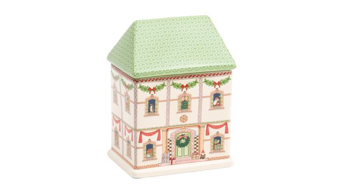 Holiday decorations like this ceramic house storage jar, may become much more affordable as they go on sale after Christmas. They look beautiful on coffee tables, bookshelves, bar carts, fireplace mantels and kitchen counters. You can use them as storage to put candy or tiny keepsakes in, as well.