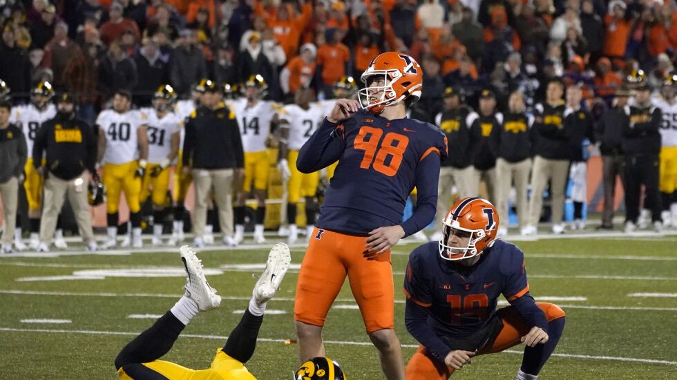 Illini coach Bret Bielema said Pinton was informed “at kickoff” that he would be taking the field goals after Griffin, who has been day-to-day, told staffers he wasn’t feeling well enough to go.
