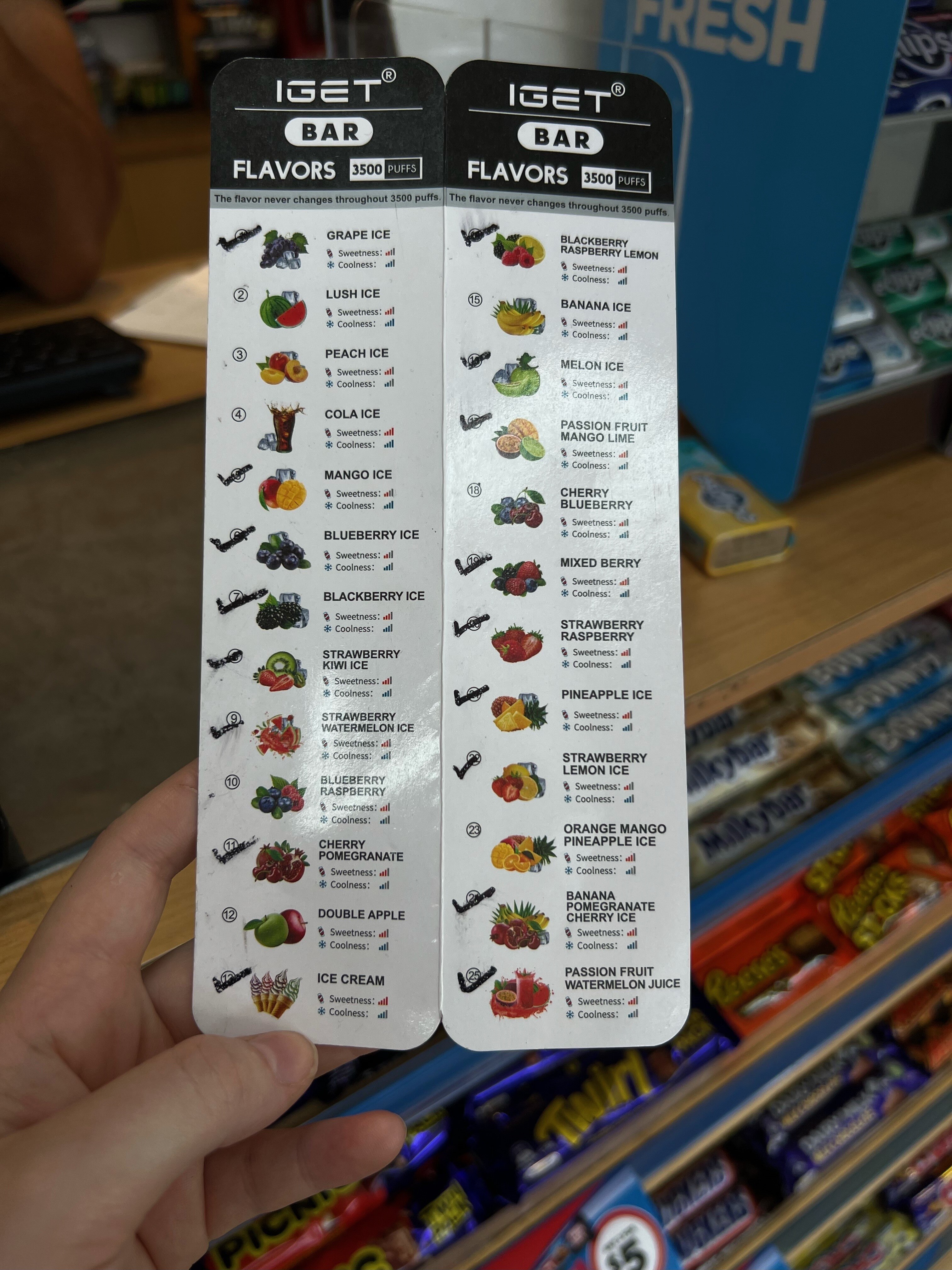 The menu is replete with numerous flavours and sizes, including vessels with enough vapour for 3,500 puffs, selling for around $45.