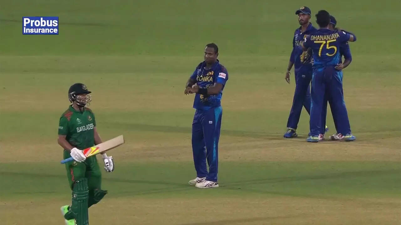 The ICC Cricket World Cup also posted the video on its Instagram handle captioning, "Angelo Mathews calls time on Shakib Al Hasan’s stint at the crease."