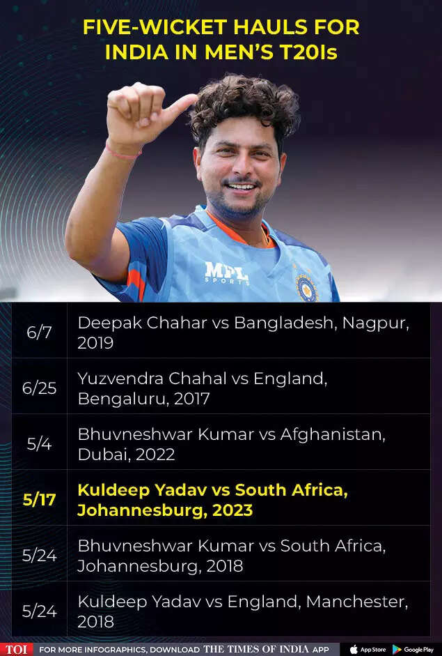 Kuldeep's dream spell made him the sixth Indian bowler to bag a five-wicket haul in T20Is.