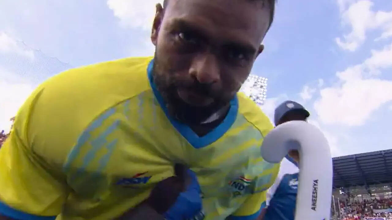 As emotions ran wild in the Indian camp, keeper Sreejesh was seen pointing out at his hockey stick where he had his wife's name Aneeshya written, dedicating the win to her along with the entire nation.