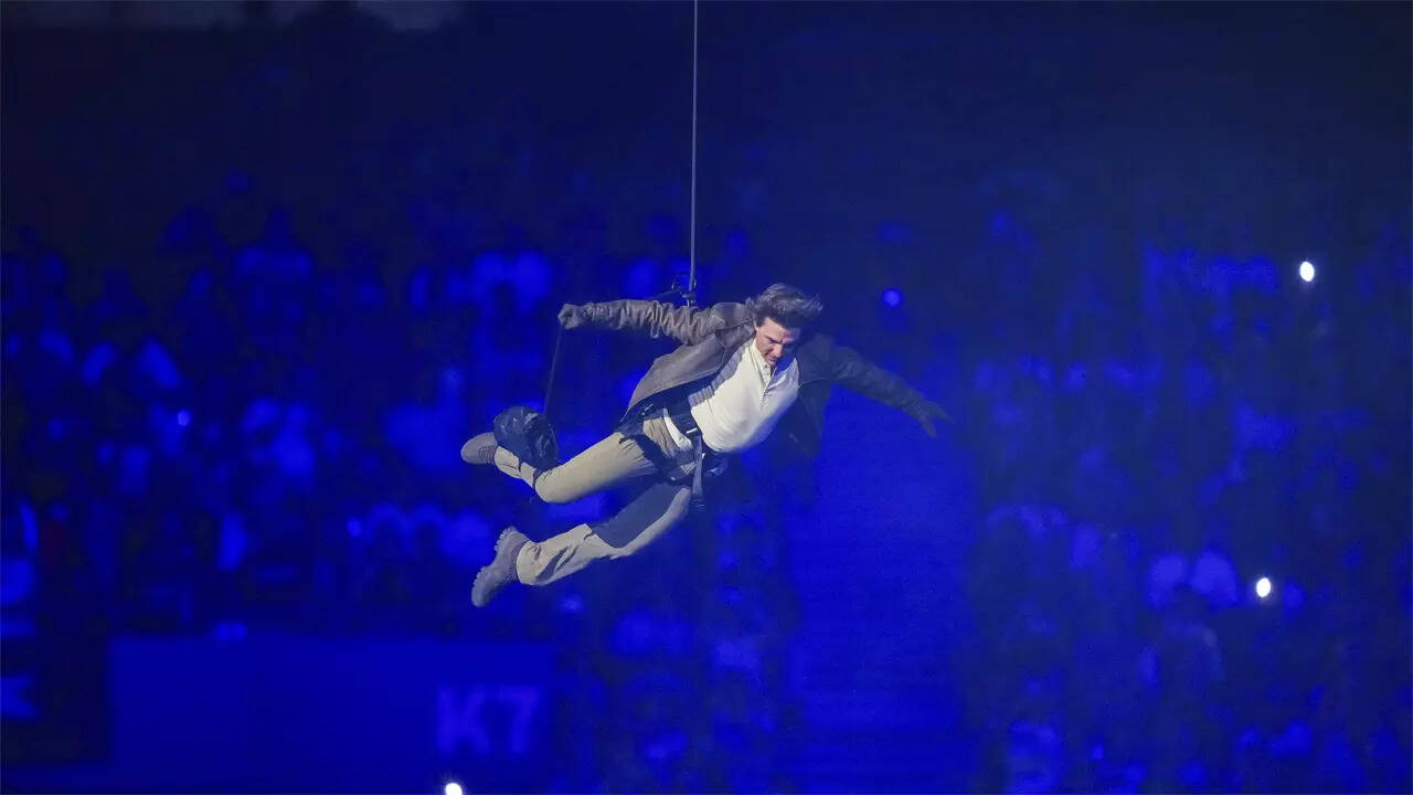 Cruise, renowned for his high-energy stunts, descended roughly 160 feet into the stadium, greeted by applause from the 80,000-strong crowd. He high-fived athletes on his way to Los Angeles Mayor Karen Bass, who was joined by US gymnastics star Simone Biles. Bass handed over the Olympic flag to Cruise, who then disappeared beneath the stage.