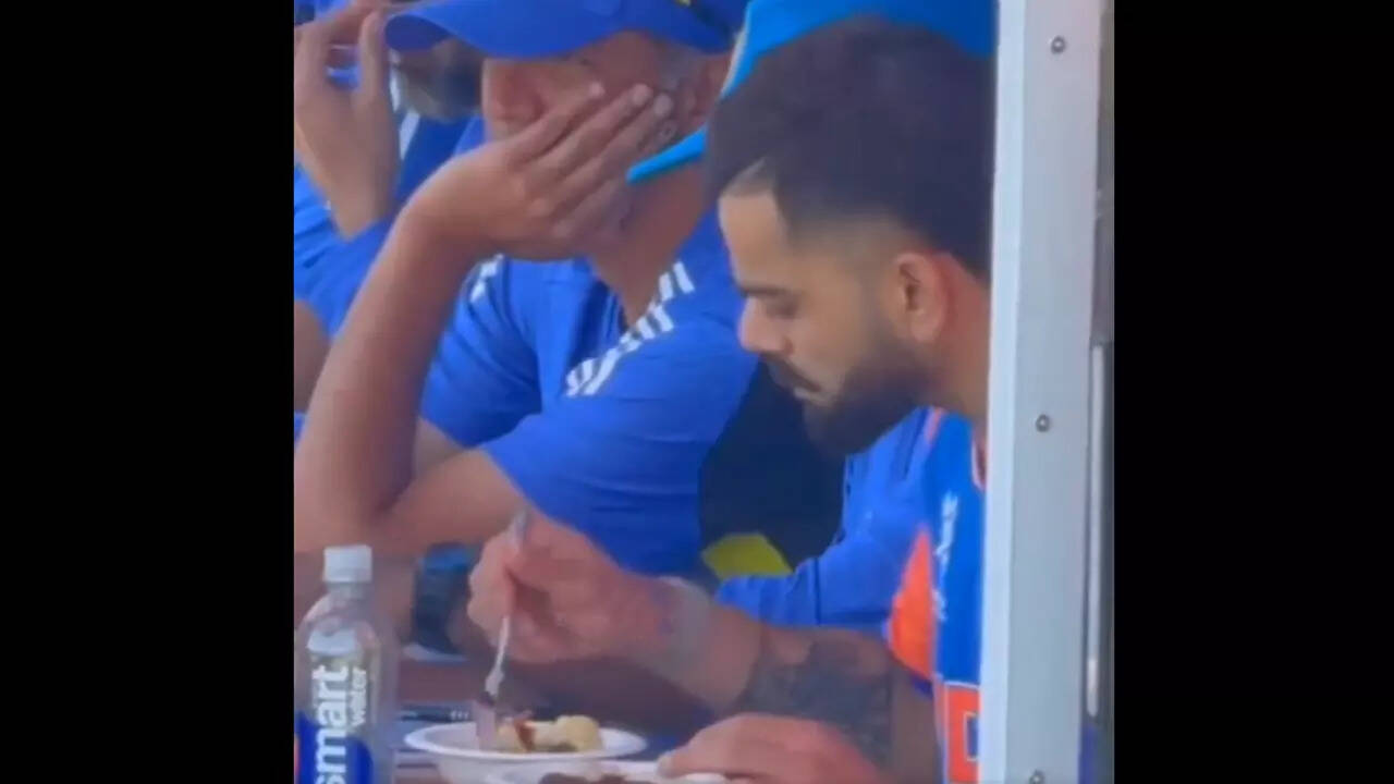 In one such video shot by a fan and circulating on social media, former India captain Kohli could be seen sitting down in the team's dugout, getting ready to have food while the fans cheered to get his attention.