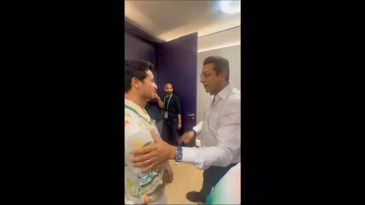 NEW DELHI: Legendary Pakistani pacer Wasim Akram met young Indian cricketer Abhishek Sharma following India's match versus Pakistan at the Dubai International Cricket Stadium.