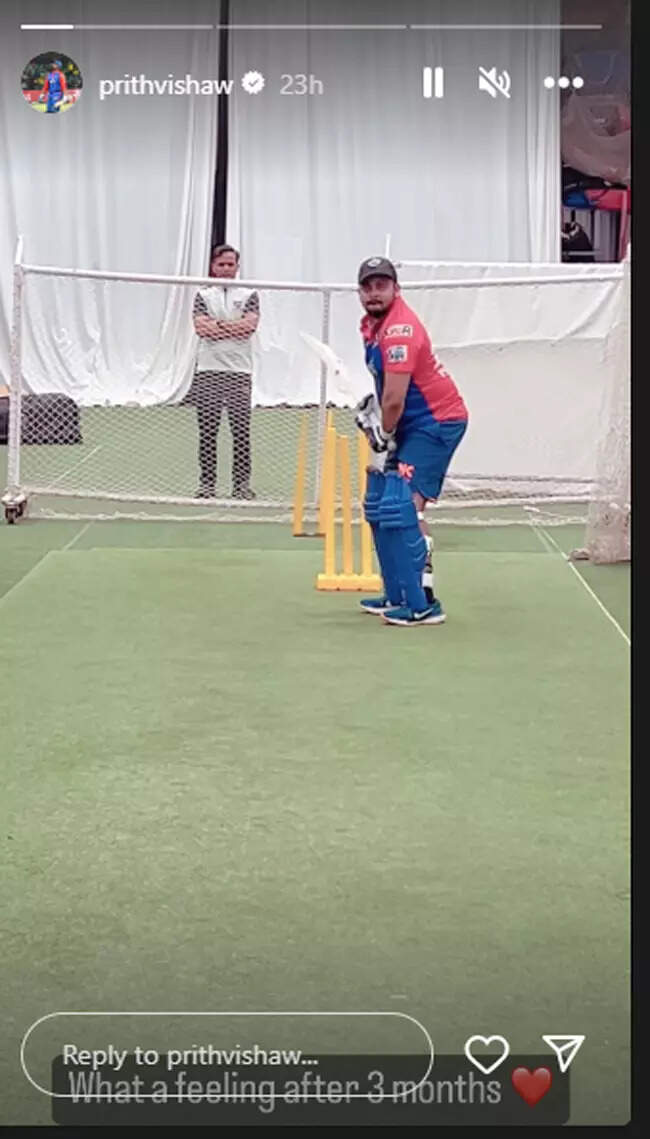 NEW DELHI: India batter Prithvi Shaw on Friday posted a video of himself doing batting practice in nets at the National Cricket Academy (NCA) in Bengaluru.